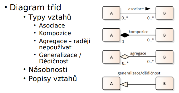 - agregace = něco mezi asociací a kompozicí (radí se moc nepoužívat)