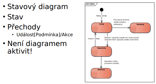 - u výstupních hran se uvádí událost kvůli které se entita převedla do jiného stavu