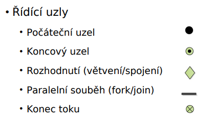 - končící hnědá ploška - nepustí tokeny dál, dokud nebudou na vstupech všechny (taková Bariéra v BI-OSY) - dále pokračuje jen jeden