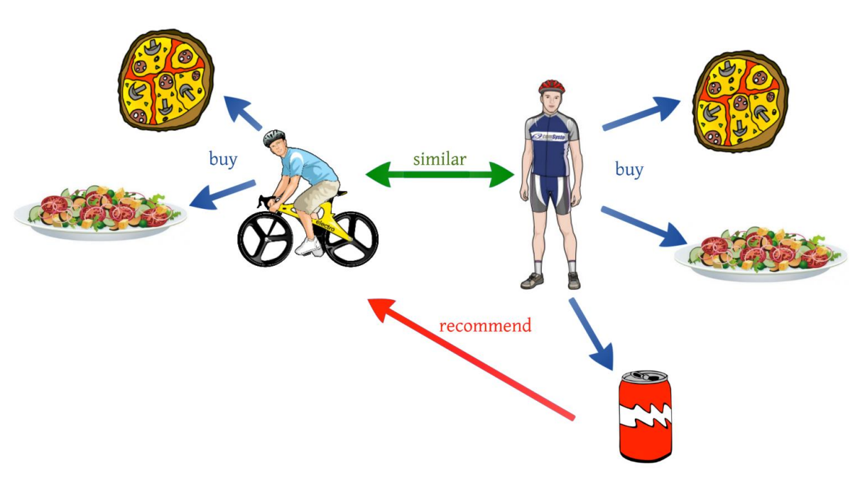 - spočítají se podobnosti mezi uživateli, vybere se podmnožina nejpodobnějších aktivnímu uživateli a vypočítá se předpokládaný rating aktivního uživatele (na základě ratingů ostatních uživatelů)